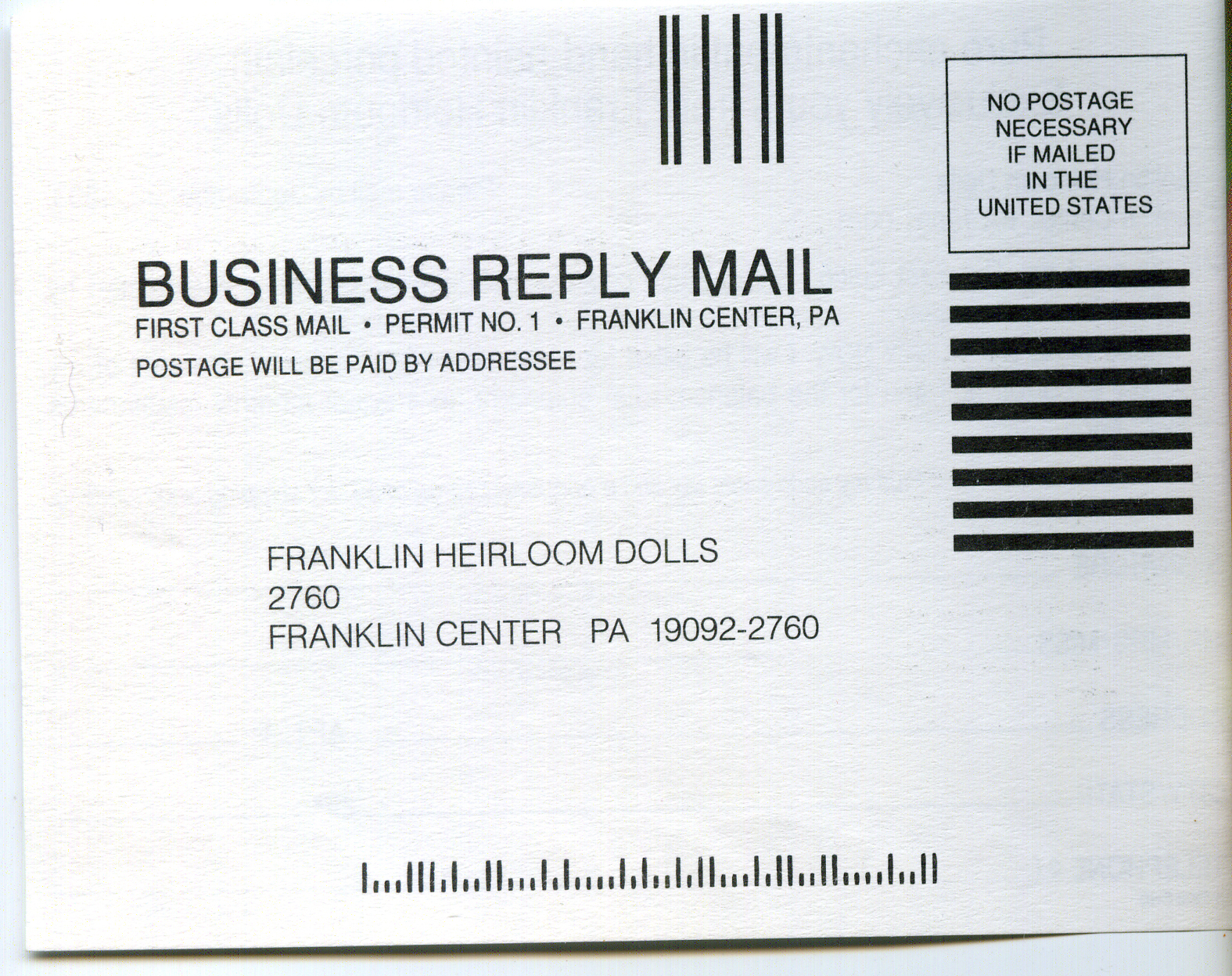 A Franklin Heirloom Doll ad and card appeared in the August/September 1993